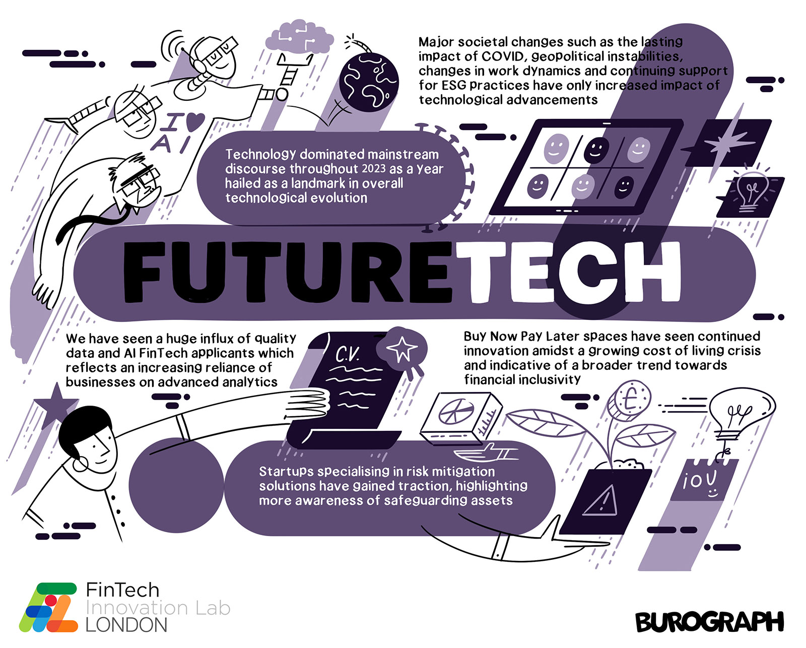 Firstly, there has been an influx of quality data and AI applicants, reflecting the increasing reliance of businesses on advanced analytics, and the overall integration of AI within everyday life. Secondly, startups specialising in risk mitigation solutions have gained traction, highlighting a heightened awareness of safeguarding of both institutional and private financial assets in an ever-changing global market environment. Finally, the Buy Now Pay Later (BNPL) space has witnessed continued innovation – particularly poignant amidst a growing cost of living crisis and indicative of a broader trend towards financial inclusivity.